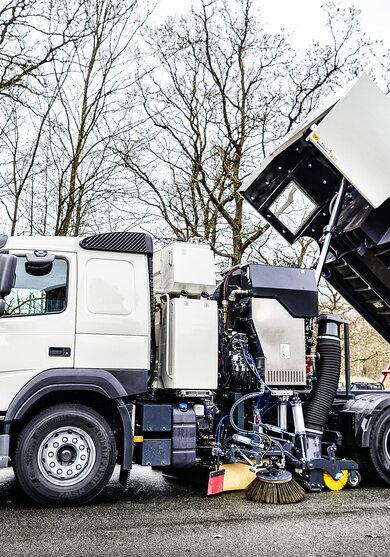 Das mittelgroße Modell XPowa V120 bietet dank einer Vielzahl von Optionen maximale Flexibilität für unterschiedlichste Einsatzbereiche. Mit einem 12 m³ Kehrgutbehälter und einem Standardwassertank von 3.660 Litern ist diese moderne Kehrmaschine leistungsstark und vielseitig einsetzbar.