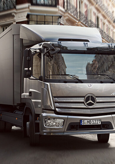 Wirtschaftlich, zuverlässig und sicher. Angefangen bei den äußerst sparsamen BlueTec® 5-Motoren, der auf Wunsch erhältlichen Motor-Start-Stopp-Anlage* und dem Permanent Magnet Retarder über die fein abgestimmten Achsen und Getriebe bis hin zu einer Vielzahl von Ausstattungsmöglichkeiten, die nicht nur durch Funktionalität überzeugen, sondern auch durch hochwertige Haptik und Optik. Und nicht zuletzt machen seine kompakten Maße und sein gutes Handling den Atego zum idealen, wendigen Lkw, der auch in engen Gassen und Hinterhöfen und überall dort, wo es auf jeden Zentimeter ankommt eine gute Figur macht.