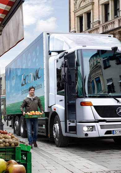 Für Ihren Erfolg vereint der Econic alles, was Sie in der Citylogistik brauchen: hohes Transportvermögen eines Lkw, kompakte Wendigkeit eines Transporters und Ergonomie eines Niederflurfahrzeugs.